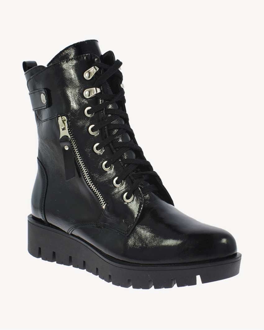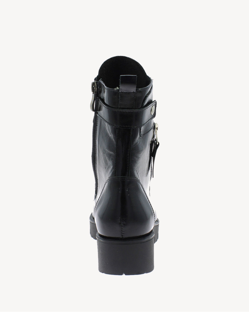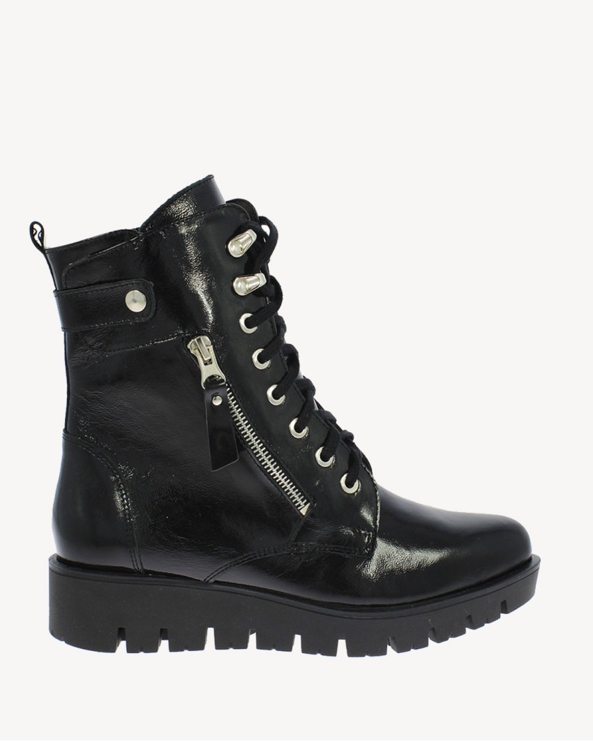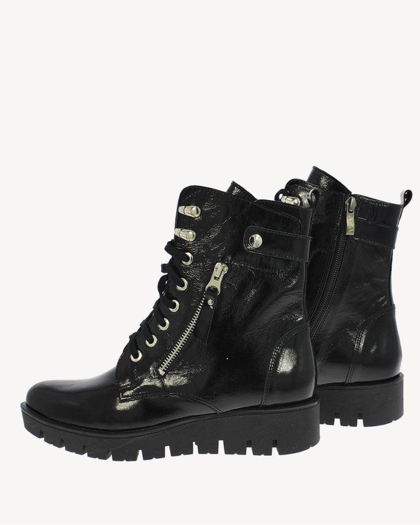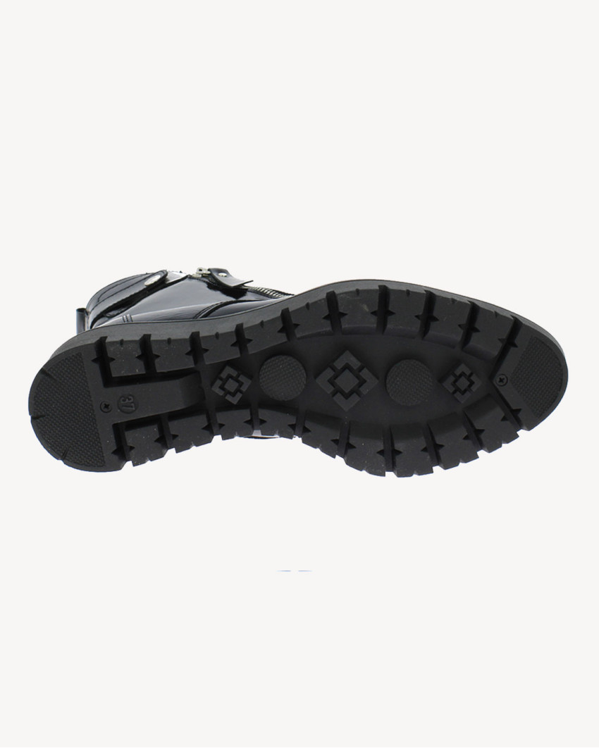Czarne botki na modnej platformie. Wysoka, mocna podeszwa swietnie wspólgra z awangardowym stylem obuwia, który lagodzony jest poprzez blysk lakierowanej skóry. Calosc robi swietne wrazenie i sprawia, ze nie mozna przejsc obojetnie obok tego modelu. Czarne botki AGA to propozycja jesienno-zimowa, a dzieki wewnetrznemu ociepleniu sprawdzi sie nawet w najmrozniejsze dni. Drobne ozdoby w postaci zamka z ozdobnym kawalkiem skóry nadaja calosci jeszcze bardziej modnego charakteru, co sprawia, ze to idealna propozycja na co dzien (np. do pracy lub na zakupy). Bez watpienia MUST HAVE tego sezonu.