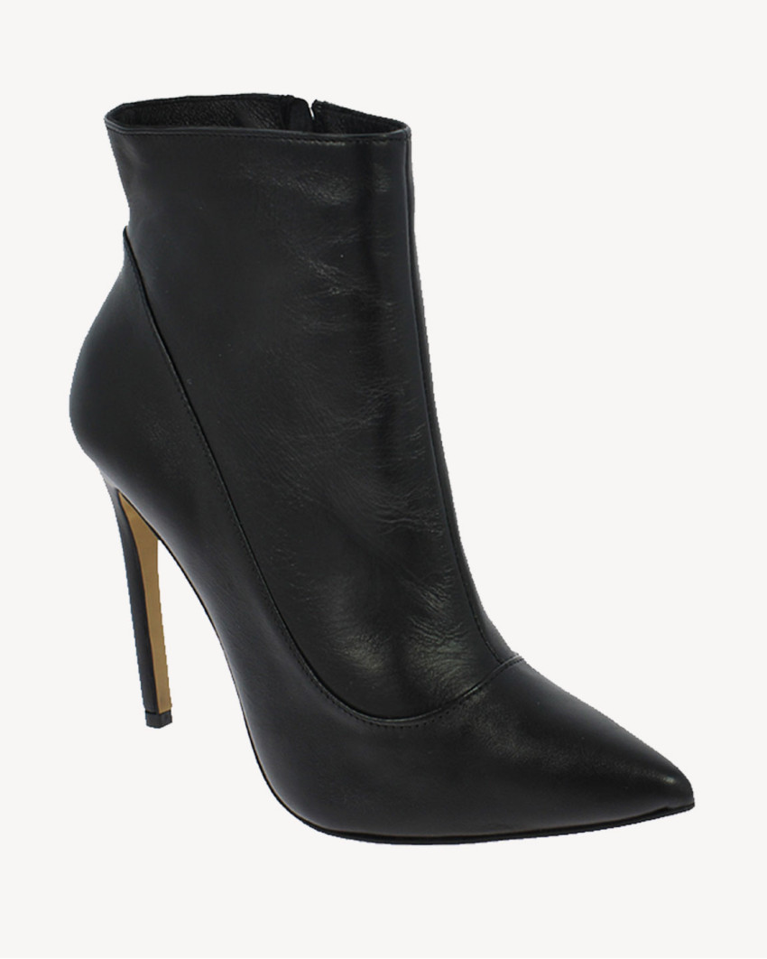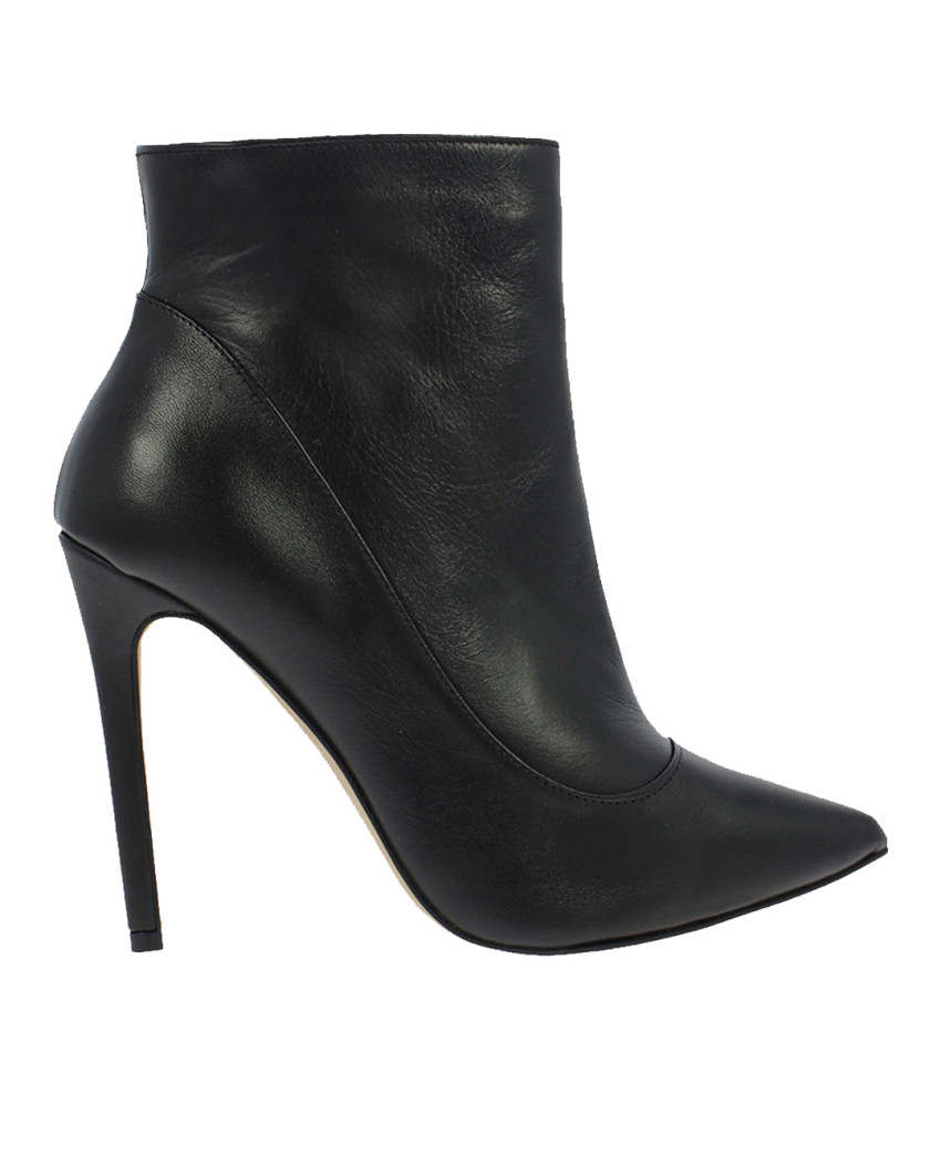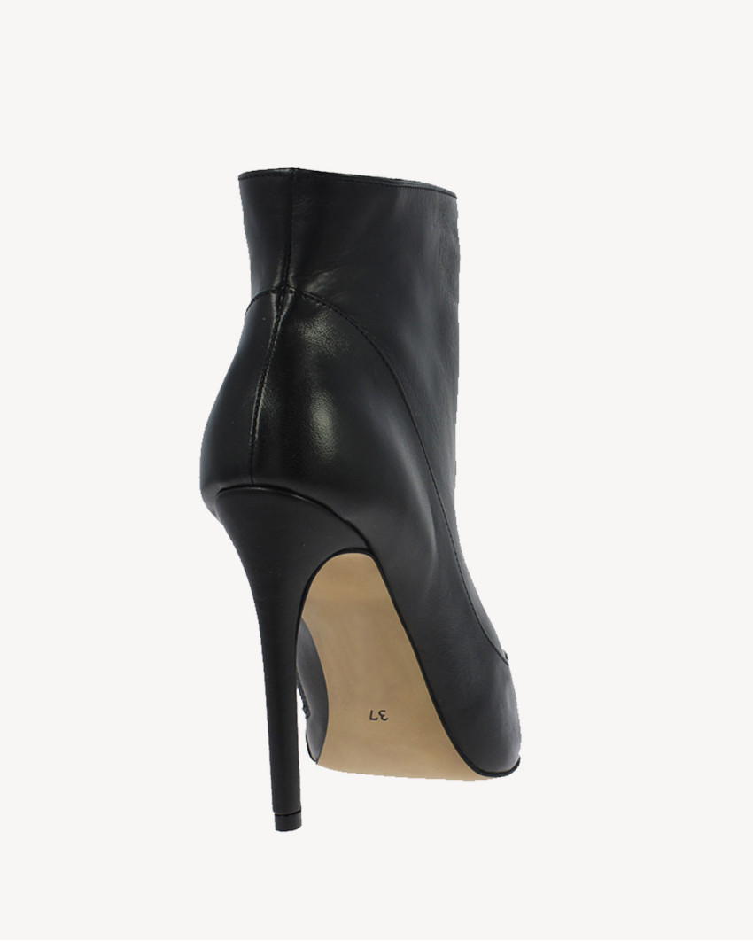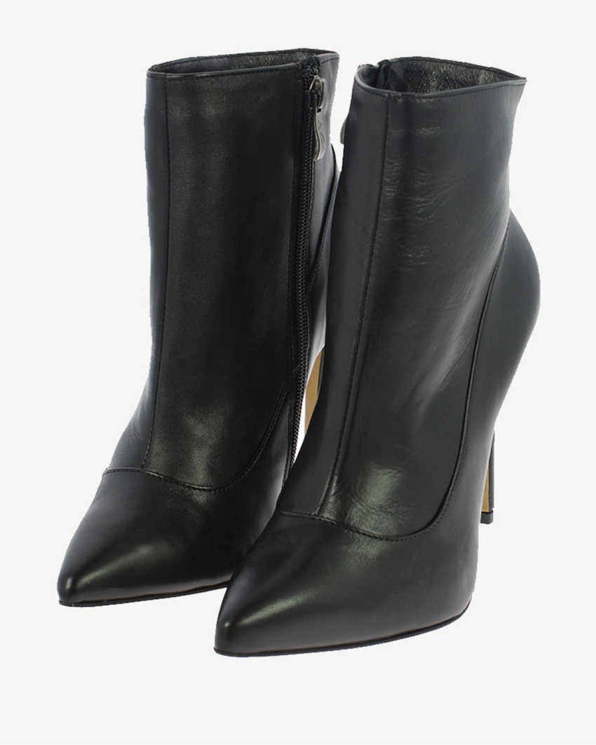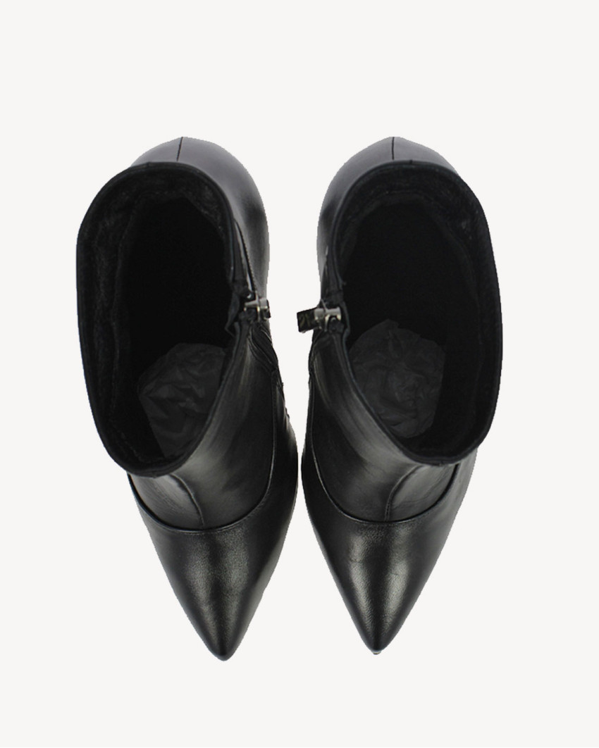 Czarne Botki ocieplane obcas 11 cm skórzane