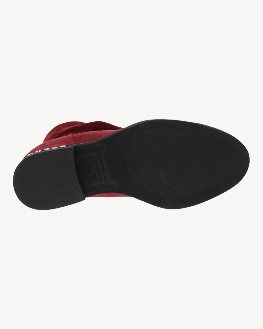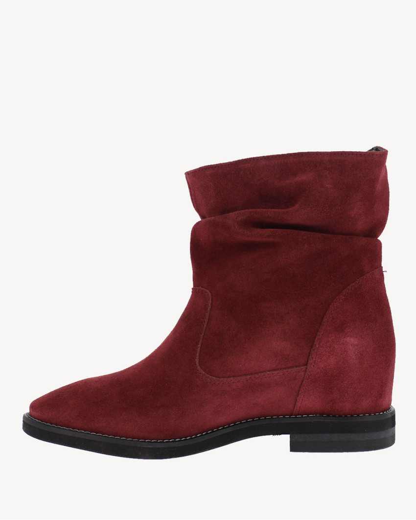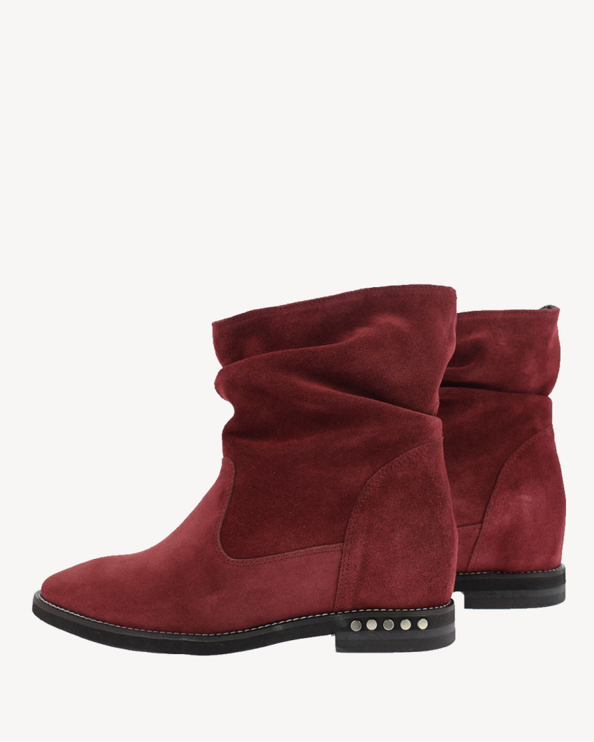 Bordowe botki z miekkiej skóry welurowej. Buty z wbudowanym wewnatrz koturnem o wysokosci 6 centymetrów, dzieki czemu mozesz sobie dyskretnie dodac wzrostu. Wszystkie elementy obuwia zostaly wykonane z naturalnych materialów, co gwarantuje wysoka jakosc, komfort oraz wlasciwa cyrkulacje powietrza. Oryginalny kolor i klasyczny fason sprawiaja, ze te bordowe botki sa bardzo uniwersalne i mozesz je zestawiac ze wszystkim. Klasyczne dzinsy i skórzana kurtka – dlaczego nie? A moze plisowana spódnica i puchowa kurtka? Takie polaczenie to strzal w dziesiatke. Wybierz botki AGA i baw sie moda.