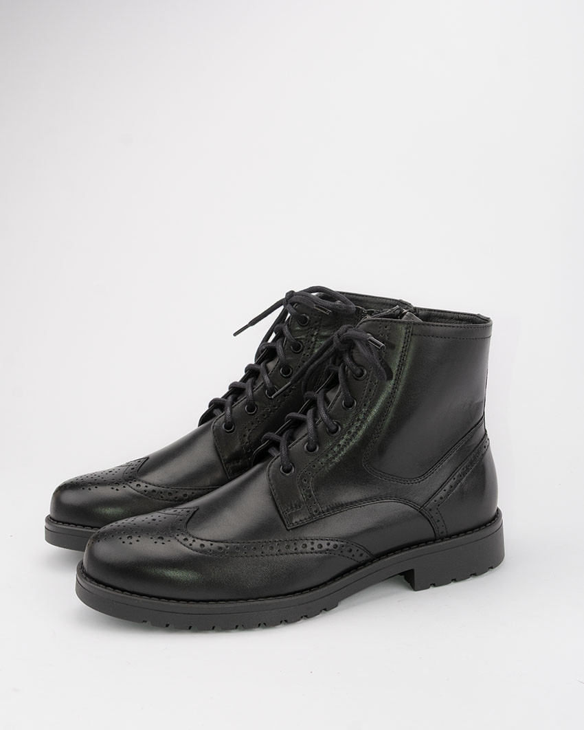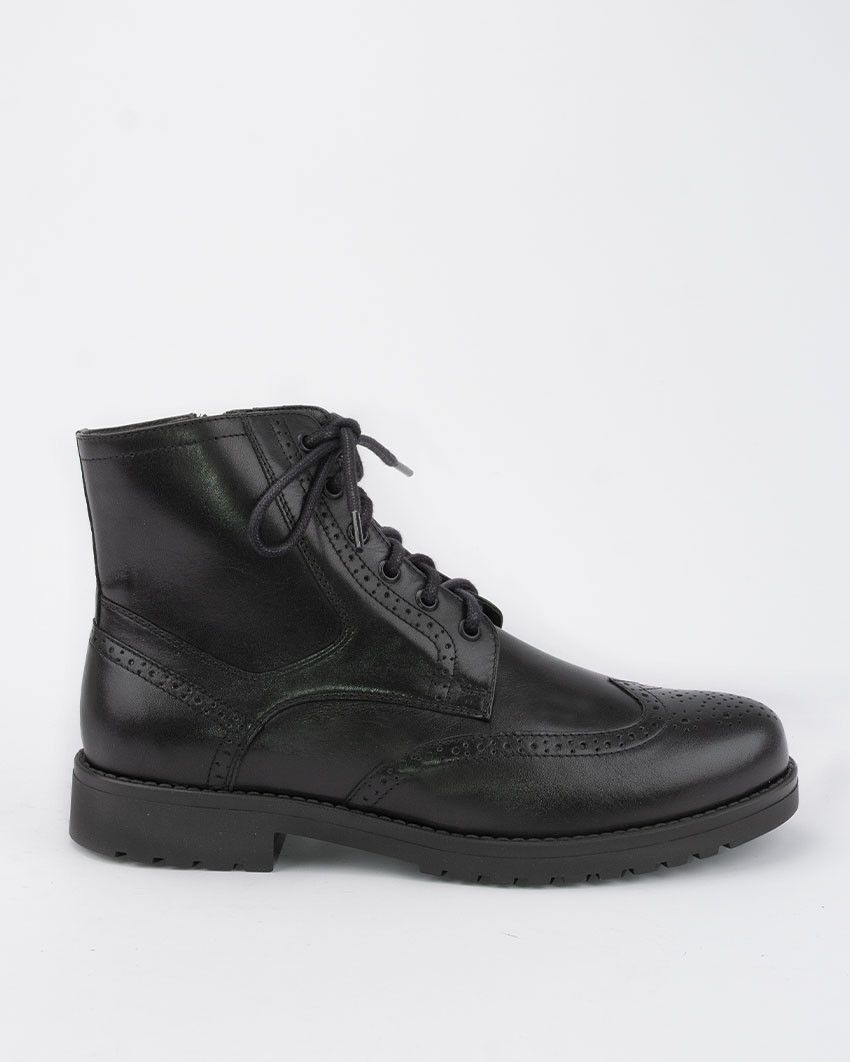 Męskie botki sznurowane BURLEY, czarna skóra lico