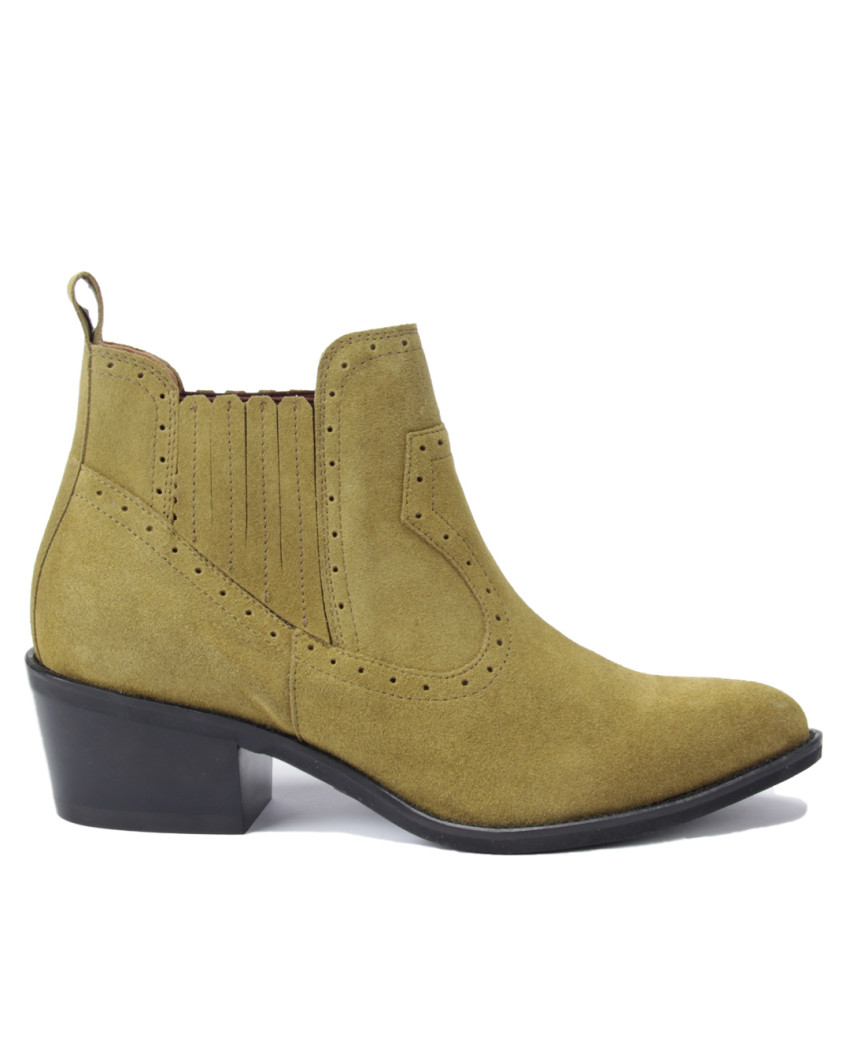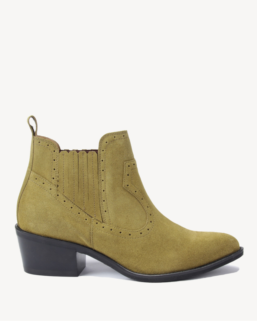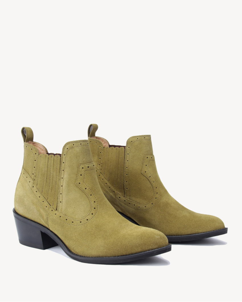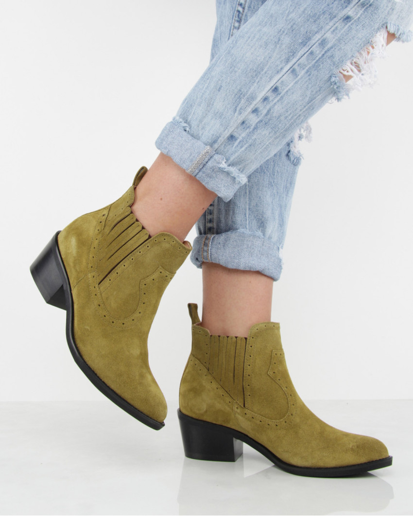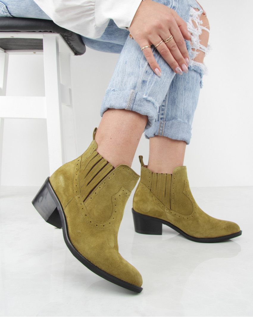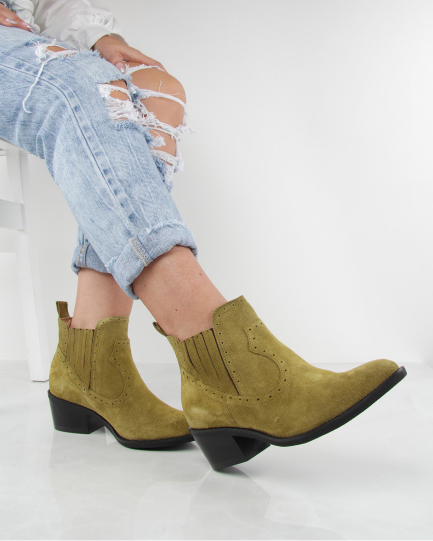 Niskie kowbojki ze skóry welurowej na 5cm obcasie