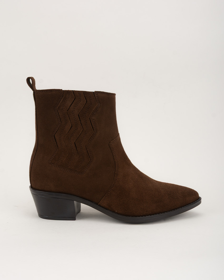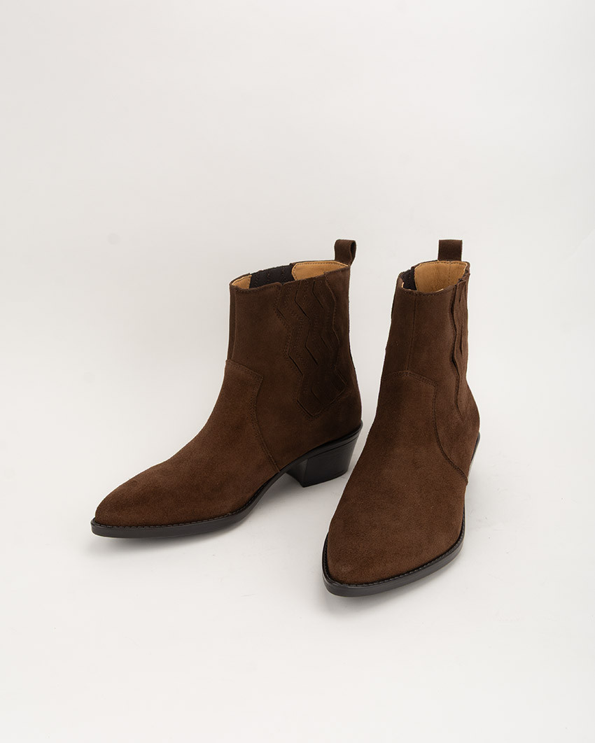 Brązowe welurowe kowbojki Carmen na niskim obcasie