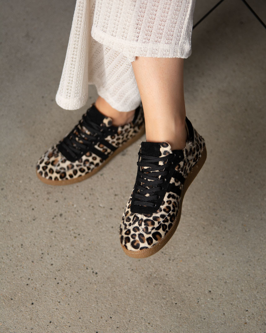 Trampki damskie w centki na płaskiej podeszwie, z miękkiej skóry z naturalny włosiem (koza), odpornej na przemakanie. Miękka i delikatna kozia skóra naturalna sprawia, że trampki są super wygodne a stopa w nich oddycha swobodnie. Te retro trampki są klasyką mody streetwearowej, idealne na miasto. Nie są jedynie dodatkiem do stroju - trampki Botimo nadają styl! Skóra została przez nas profesjonalnie zaimpregnowana, tak aby nie przepuszczała wody oraz była łatwa do odczyszczenia. Szerokie czubki i miękka podeszwa zapewniają 100% komfortu noszenia. Posiadają także skórzaną wkładkę, dzięki czemu stopa "oddycha". Napiszemy nieskromnie, że są to najwygodniejsze buty tego tego i kolejnych sezonów. Klasyka streetwearu oraz mody casual.