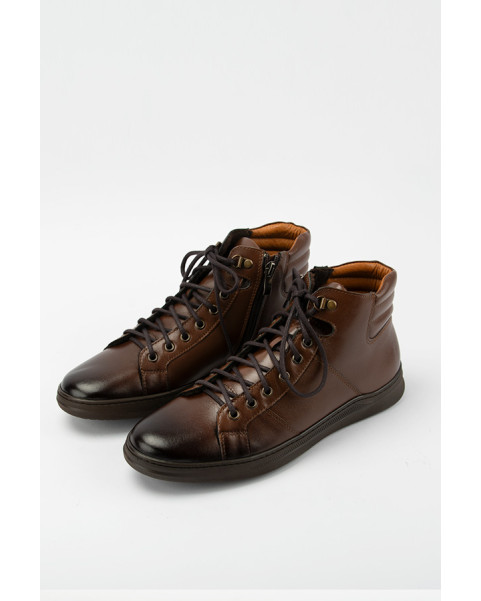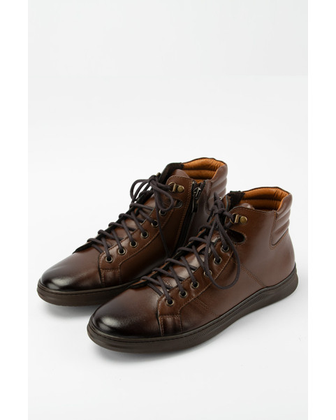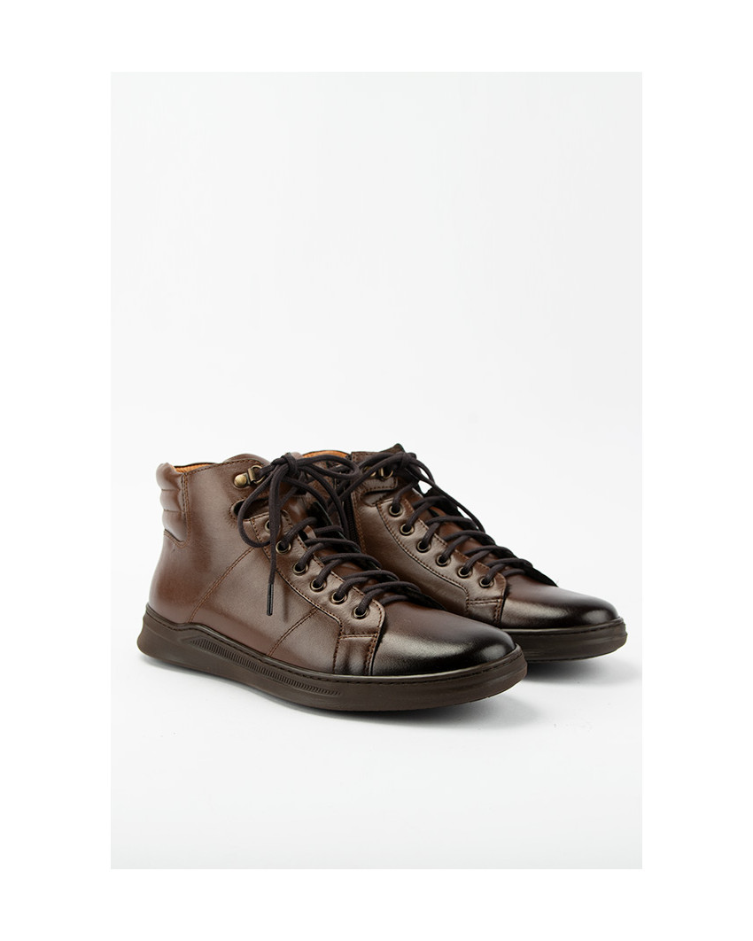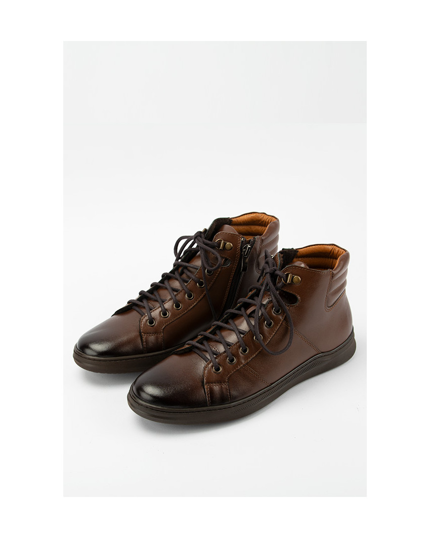 Zimowe męskie botki sportowe Toledo brąz, skóra naturalna