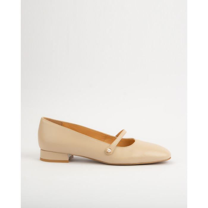 Beżowe baleriny z ozdobną perełką LOU skóra licowa