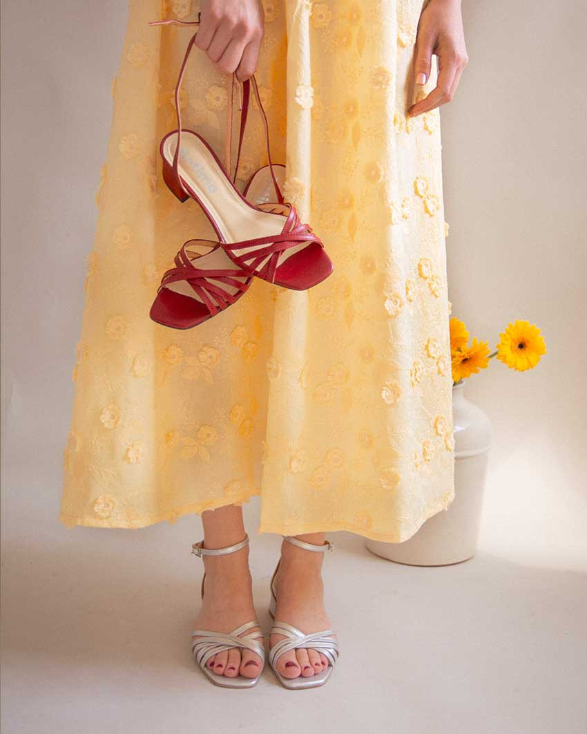 Srebrne sandały JADE na niskim obcasie, z zapięciem