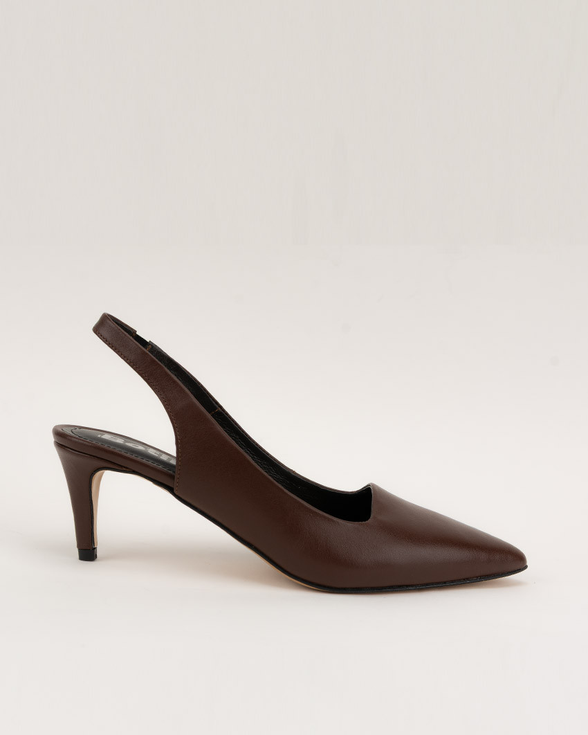 Brązowe Czółenka odkryte Moira, skóra naturalna