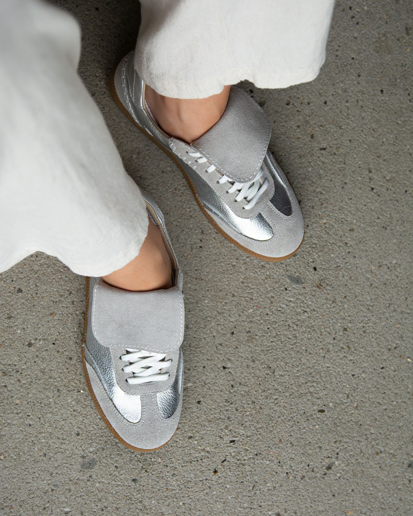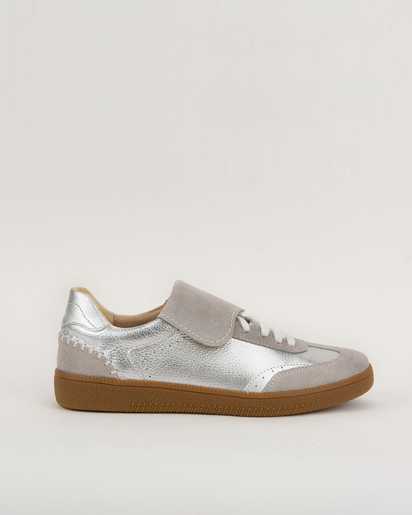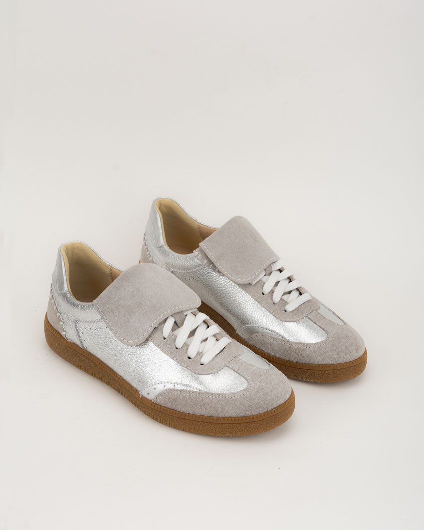 Boston srebrne trampki damskie z językiem, skóra naturalna