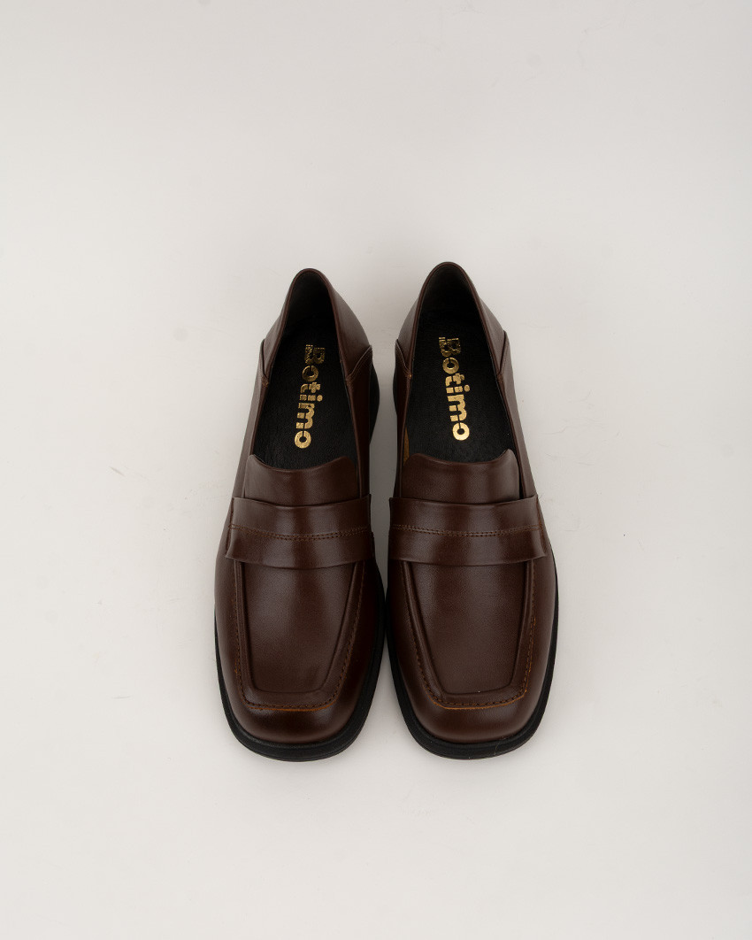 Klasyczne loafersy ze skóry naturalnej z kwadratowym czubkiem. Skóra, z której uszyliśmy model Lotta, charakteryzuje się wyjątkową miękkością. Spód buta to kauczukowy obcas i podeszwa, która świetnie dopasowuje się do siły nacisku oraz do podłoża.Zabudowana cholewka oraz grubsza podeszwa zapewniają komfort noszenia oraz nadają butom klasycznej elegancji. Wykonanie ze skóry naturalnej oraz miękka, skórzana wkładka, sprawiają, że te klasyczne mokasyny Botimo są bardzo wygodne, nawet wtedy, kiedy nosisz je przez cały dzień. Użycie specjalnej wkładki ze skóry naturalnej pozwala stopom „oddychać”. Dodatkowo wysokogatunkowa skóra naturalna dobrze dopasowuje się do każdego rodzaju stopy, co gwarantuje bardzo wysoki komfort noszenia. Klasyczna forma oraz wysoka jakość wykonania sprawiają, że te mokasyny nie tylko dobrze wpisują się w modowe trendy ale z pewnością nigdy z mody nie wyjdą. Skórzane mokasyny Botimo, to dobra inwestycja na lata. Odpowiednia konserwacja oraz impregnacja zapewni im świetny wygląd na długie lata.