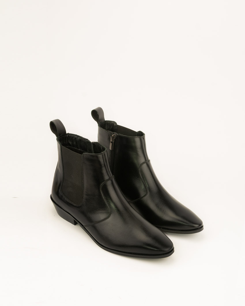Niskie botki damskie MUSE, czarne skóra naturalna